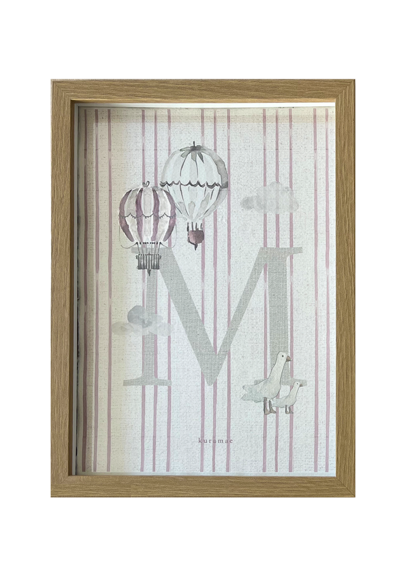 Cuadro con inicial y diseño en acuarela enmarcado con marco de madera.