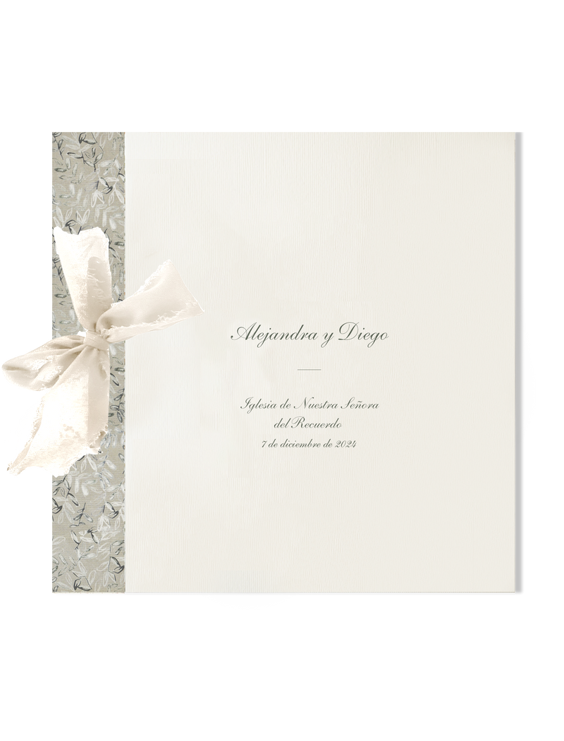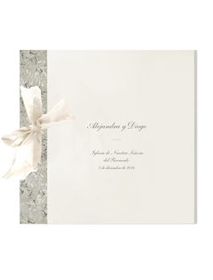Nuestros libros de firmas tienen unas medidas de 22,5 x 22,5 cm y están compuestos por un mínimo de 18 páginas de papel de 300 gramos hendidas, incluyendo portada y contraportada, perforadas y encuadernadas con un lazo.