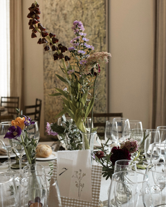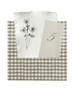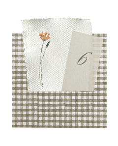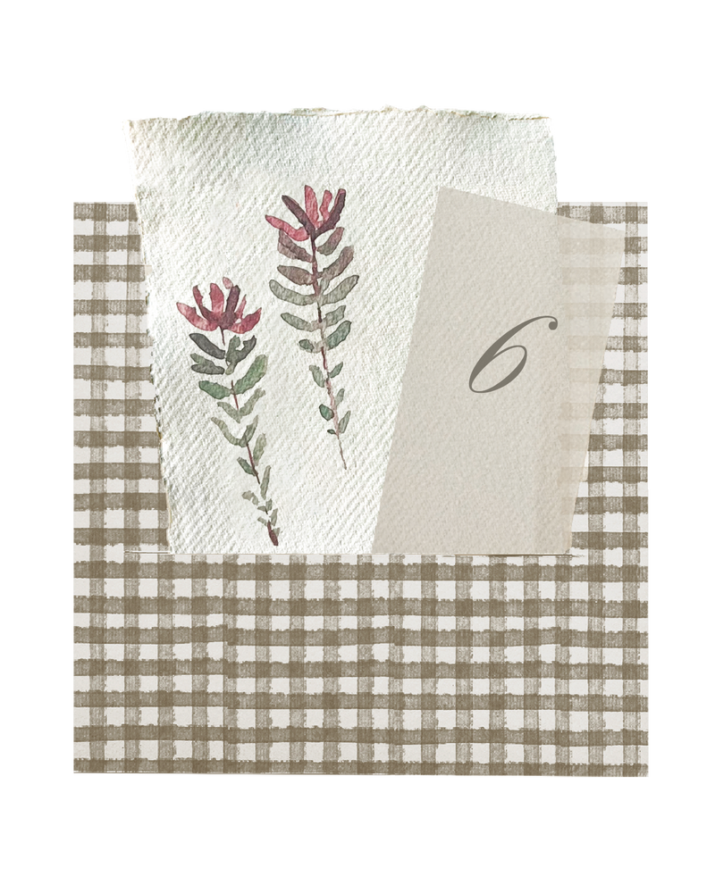 - Papel artesano tamaño A6 con flor en acuarela (una flor distinta por cada mesa)