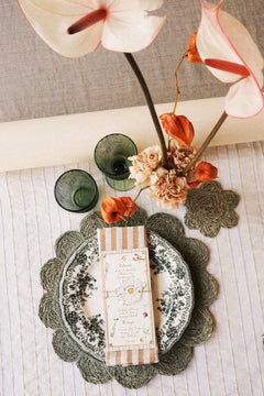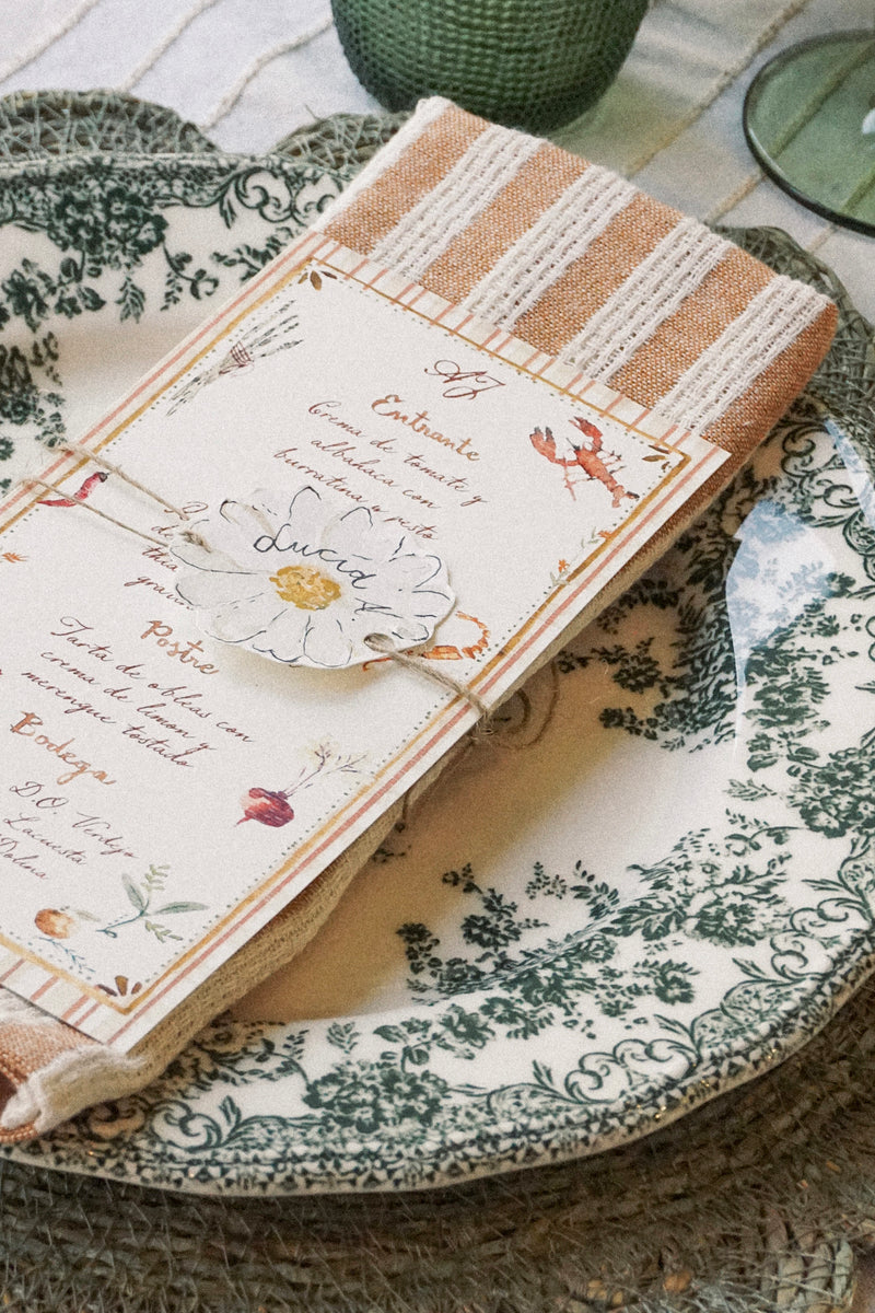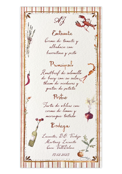 Minuta de 10 x 20 cm en papel verjurado de 300 gramos.
