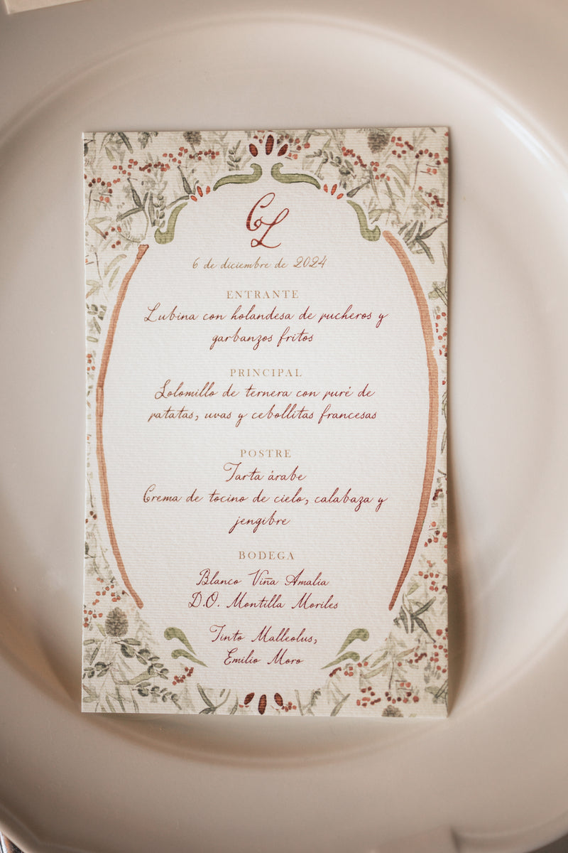 Minuta de 11 x 18,6 cm en papel verjurado de 300 gramos.