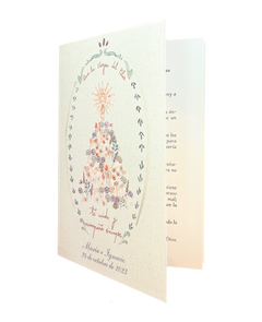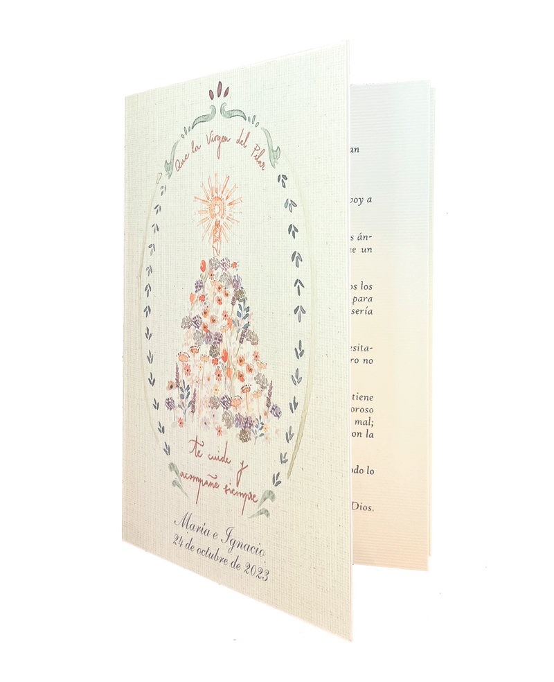 Misales de 10,5 x 15 cm con papel verjurado. Portadas de 300 gramos e interior de 160 gramos.