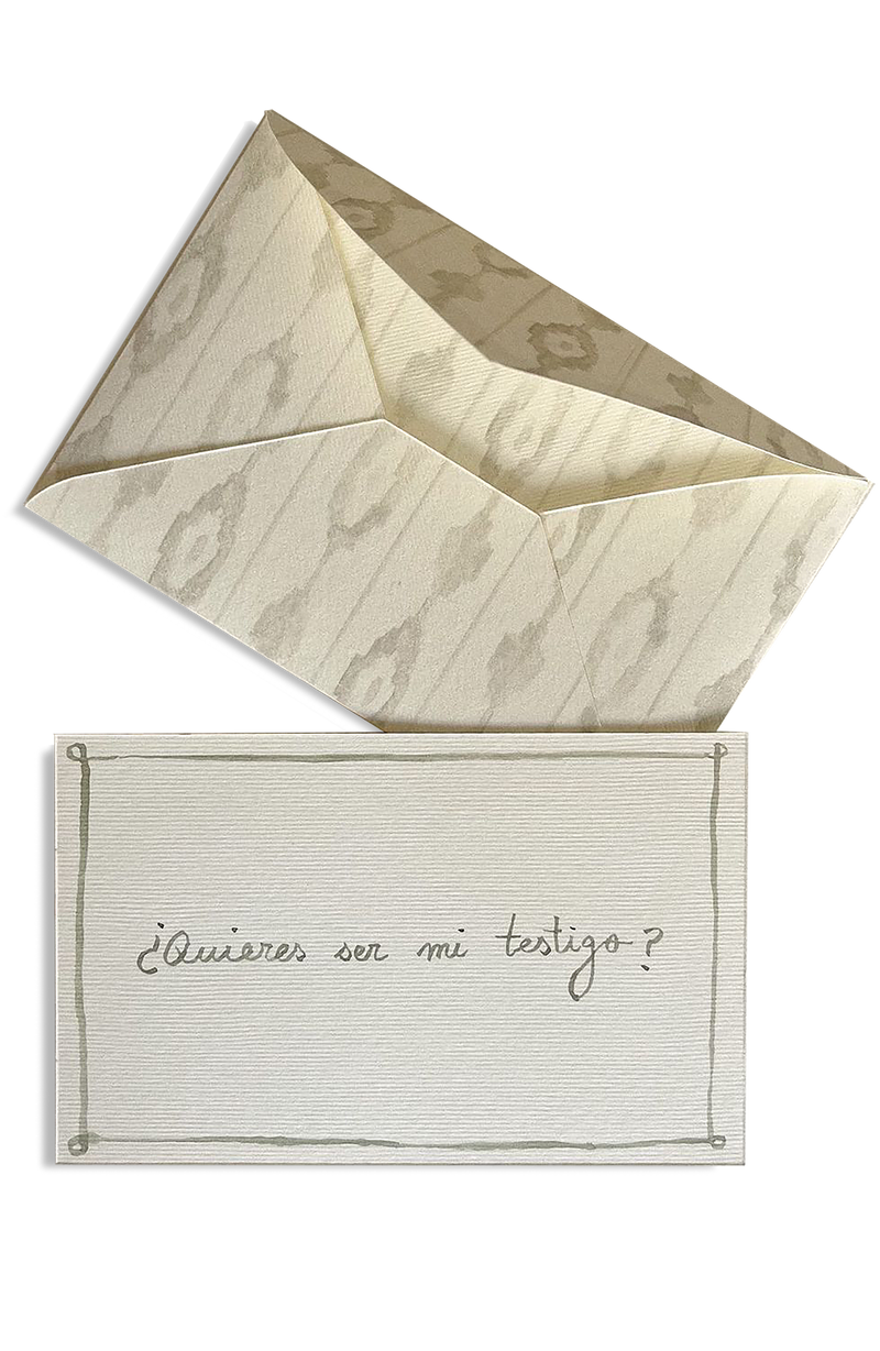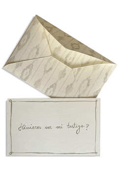 Este sobre incluye una tarjeta en su interior con la frase '¿Quieres ser mi testigo?' caligrafiada en acuarela.